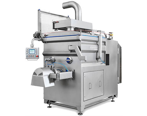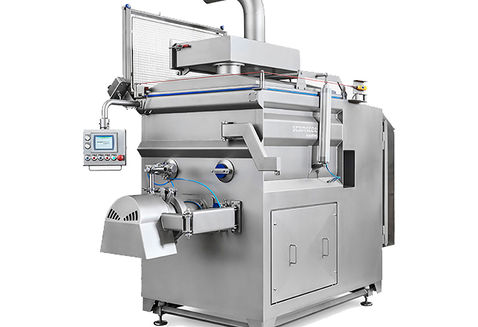 The Twin Shaft Mixers with Vacuum are ideal for mixing applications that require air evacuation prior to emulsifying, filling/stuffing, or forming. With cooling, it is also ideal for (heavy) extended products such as meat balls, luncheon meat, and patties. The unique mixing action with high peripheral wing speed gives superior protein extraction, uniform distribution of spices, additives and liquids, and provides efficient salt activation of the salt soluble meat proteins (protein extraction).