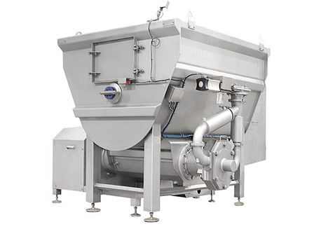 The scansteel foodtech® SuperPump series comprises 3 (three) different pump sizes. Correct choice of pump depends on several factors such as, but not limited to, pump capacity, material to be pumped, temperature, viscosity, and particle size – from pre-ground meat raw material to half a pork carcass. One significant feature is the double discharge outlet which dramatically minimizes (eliminates) fluctuations in pump capacity. Motor for pumps is designed according to pump application.