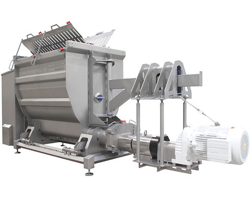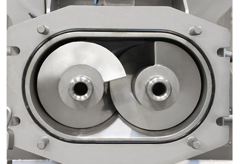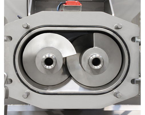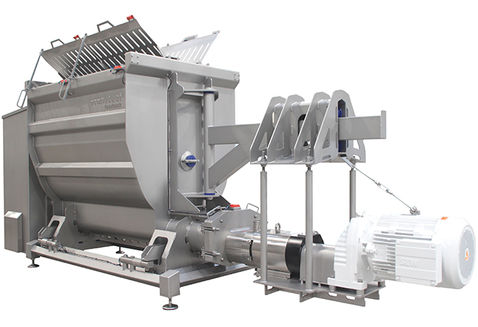 The Twin Shaft Feeder Pump (TSF) has been designed for very accurate dosing of meat raw materials, including slurry. The TSF is placed on load cells for accurate dosing of both very stiff and cold products as well as more liquid meat raw materials. The spiral feeding wing ensures accurate and continuous feeding of the twin screws which feed directly into any kind of pump. The twin screws are in mesh with each other to contribute to accurate dosing.
